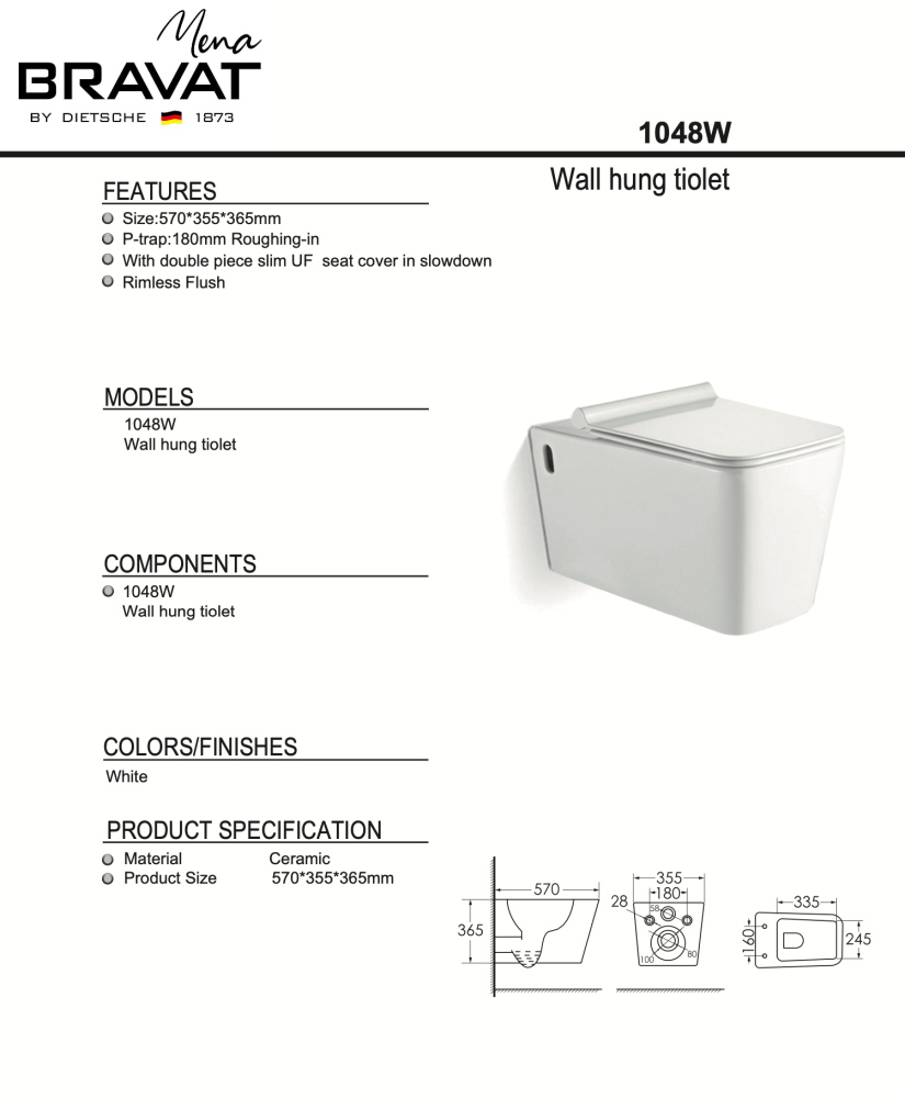 كرسي معلق حمام معلق مربع برافات / BRAVAT